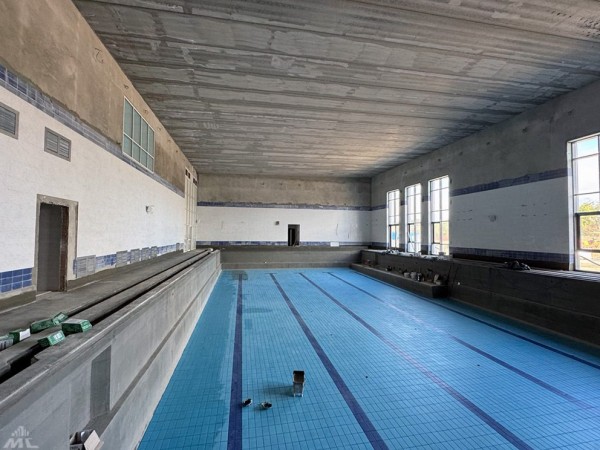 Внутри еще работа есть. Прибыло специальное покрытие для залов, докладывается плитка в бассейнах, идет наладка оборудования. Лифты уже курсируют!